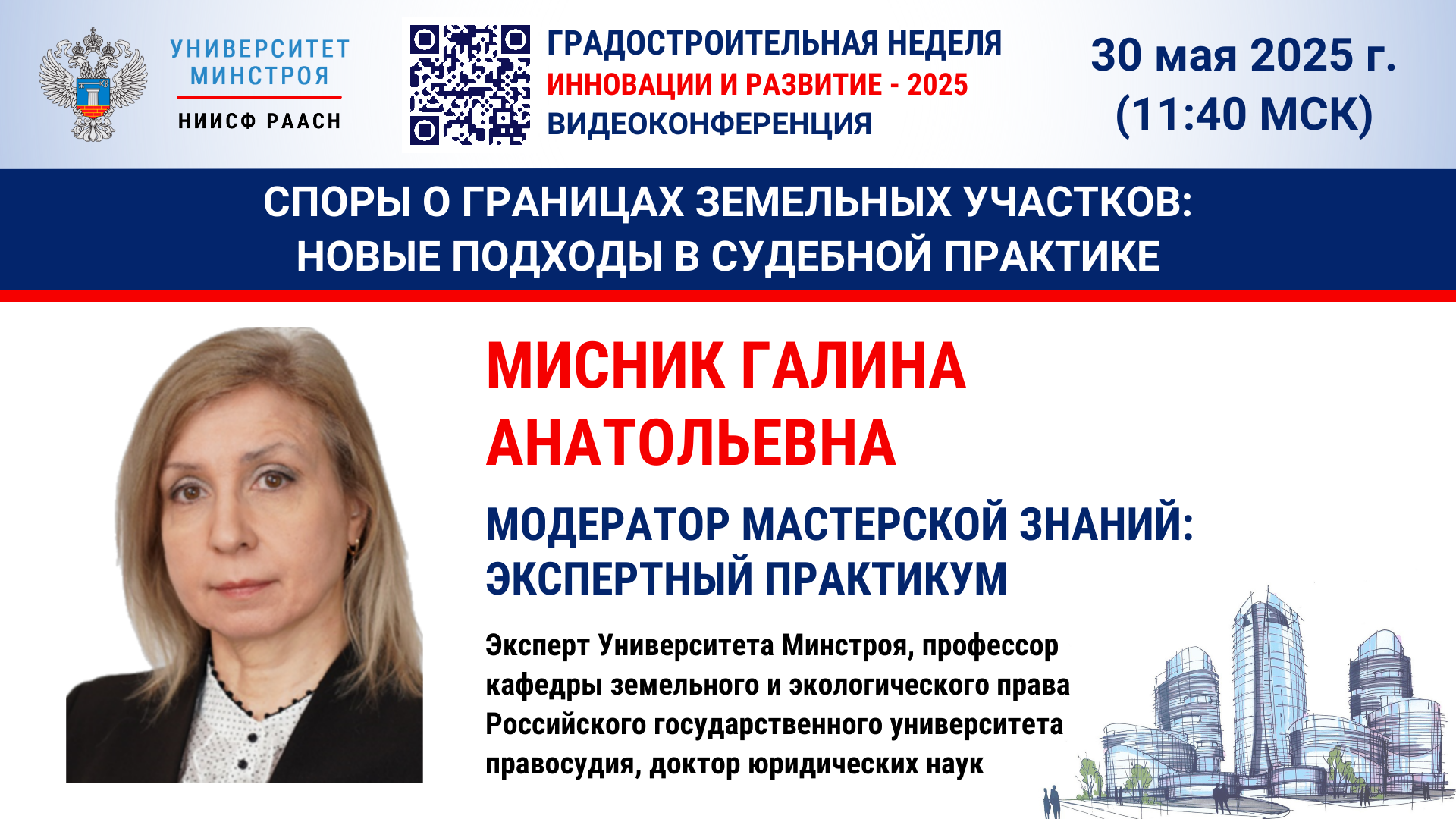Мисник Галина Анатольевна - Профессор кафедры земельного и экологического права Российского государственного университета правосудия, Доктор юридических наук