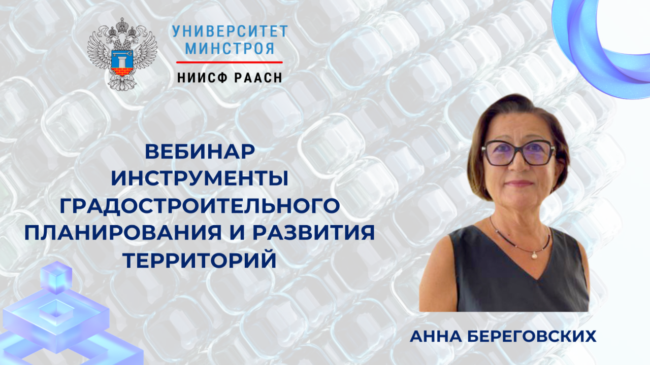 8 сентября в 11:00 (Мск) Университет Минстроя НИИСФ РААСН приглашает специалистов строительной отрасли, проектировщиков, архитекторов и представителей органов власти на вебинар «Инструменты градостроительного планирования и развития территорий».