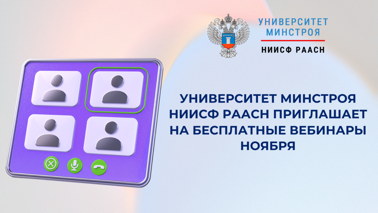 В ноябре Университет Минстроя НИИСФ РААСН проведет серию бесплатных открытых вебинаров для специалистов строительной отрасли, ЖКХ, девелопмента и органов местного самоуправления. Получился полноценный учебный календарь на месяц: от искусственного интеллекта и цифровых двойников до правовых вопросов КРТ и ценообразования для проектов «под ключ».