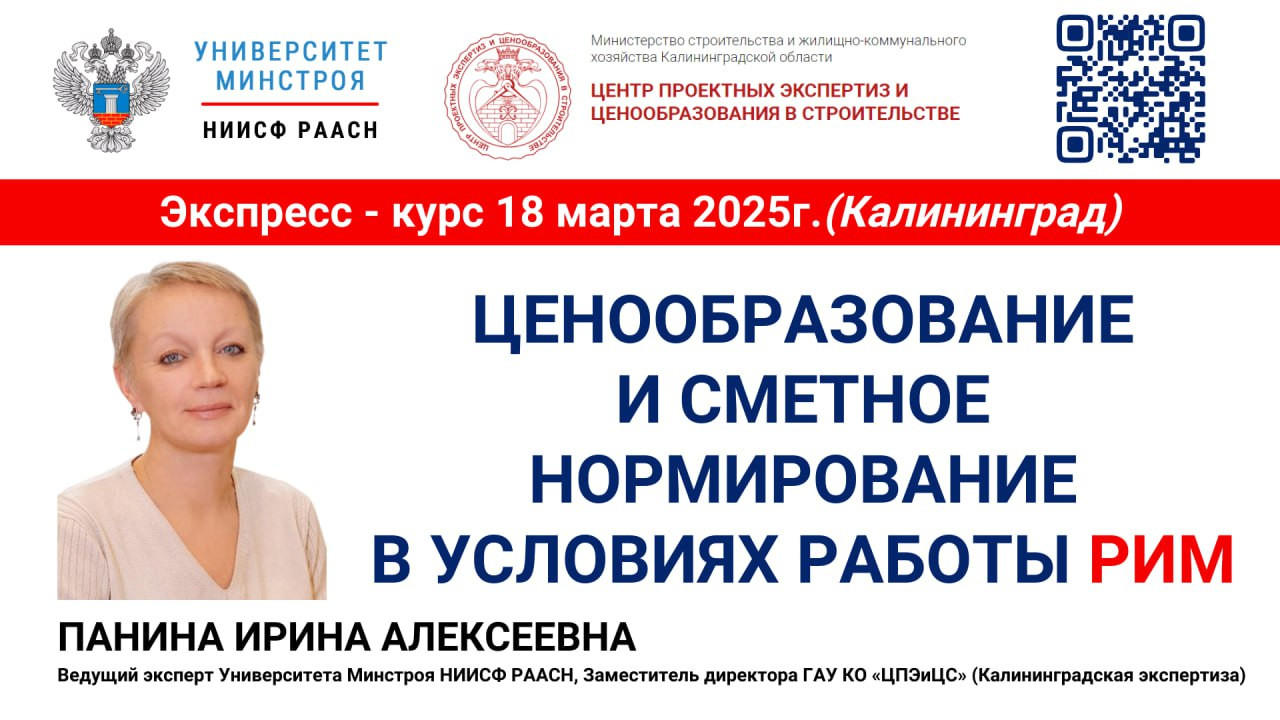 Университет Минстроя совместно с ГАУ КО «ЦПЭиЦС» (Калининградская экспертиза) приглашает руководителей и специалистов строительной отрасли на новый экспресс - курс «Строительное ценообразование и сметное нормирование в условиях работы ресурсно-индексным методом»
