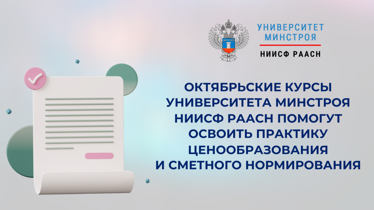 Университет Минстроя НИИСФ РААСН открывает в октябре набор на курсы по ценообразованию в строительстве