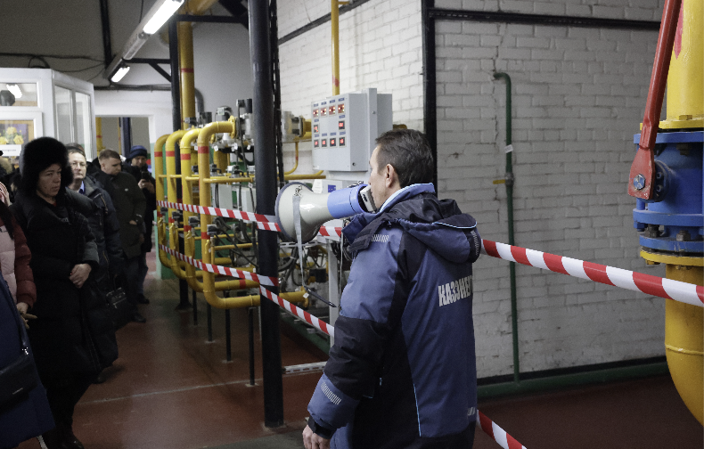 Следующей точкой маршрута стала котельная АО «Казэнерго» на улице Музыкальной. Участникам рассказали об истории объекта, реконструированного на базе существующей инфраструктуры, и продемонстрировали, как обновлённое оборудование и современные системы управления позволяют обеспечивать надёжное теплоснабжение жилых кварталов и социальных объектов. Особое внимание было уделено вопросам энергоэффективности, управляемости режимов и повышению надежности теплоснабжения как ключевым факторам устойчивой работы отрасли.