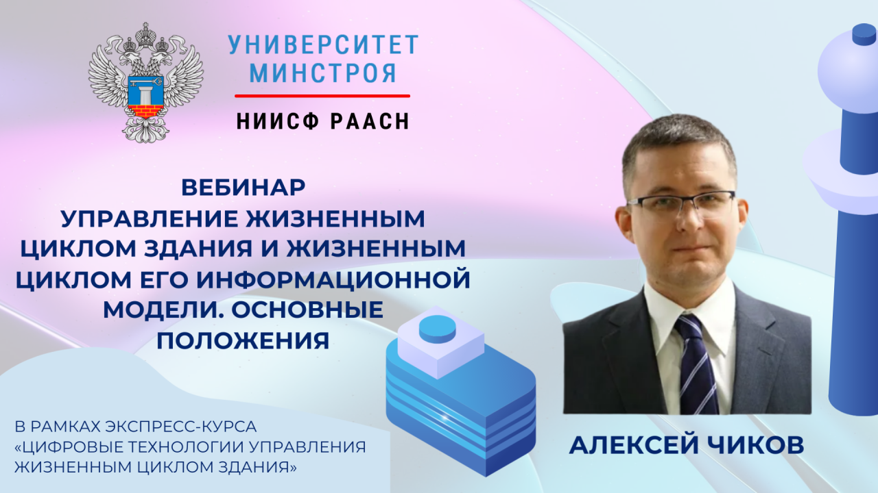 Занятие проведёт Алексей Александрович Чиков, начальник планово-аналитического отдела АО «СЗ „ЛСР. Недвижимость-М"» и эксперт Университета Минстроя НИИСФ РААСН. Он представит целостную картину управления жизненным циклом здания и информационной модели, объяснит, как формируются цели и задачи управления, какие нормативные документы действуют сегодня и какие требования готовятся к введению.