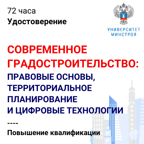 Повышение квалификации. Современное градостроительство: правовые основы, территориальное планирование и цифровые технологии